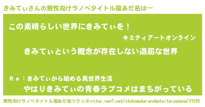 | 女子向けラノベタイトル風あだ名 | 『異世界で失敗しない100のきみてぃ』 |