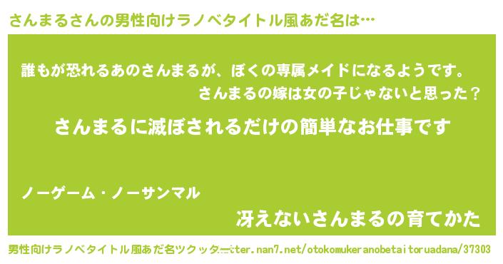 | 胡散臭い通販商品みたいなあだ名 | 『来世でも幸せになれる健康食品…その名も「さんまる」』 |