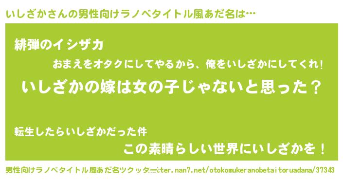 | 意味不明あだ名 | 『とにかく怪しいいしざか』 |