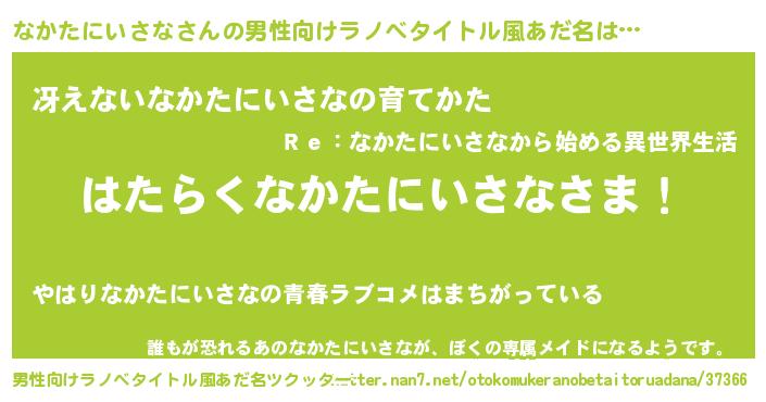 | 胡散臭い通販商品みたいなあだ名 | 『絶対に幸福をもたらす健康食品…その名も「なかたにいさな」』 |