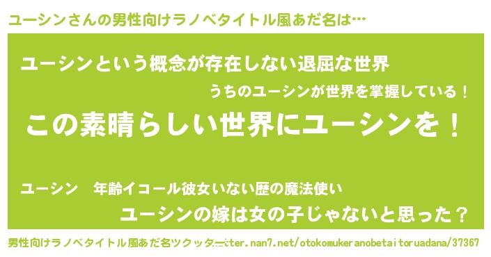 | 意味不明あだ名 | 『住所不定無職ユーシン(89歳)』 |