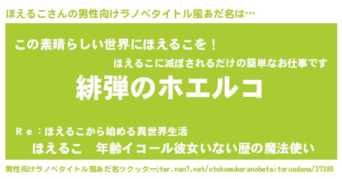 | 意味不明あだ名 | 『住所不定無職ほえるこ(79歳)』 |