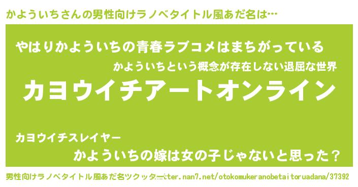 | ファンタジー風あだ名 | 『カヨフェル』『エターナルカヨウイチー』 |