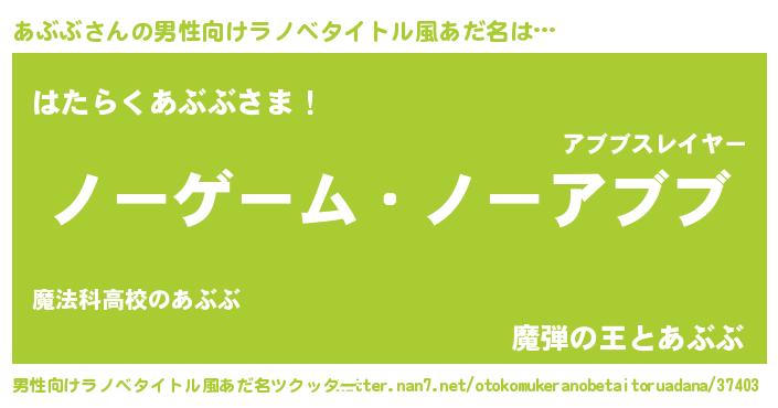 | 女子向けラノベタイトル風あだ名 | 『死神あぶぶの再婚』 |