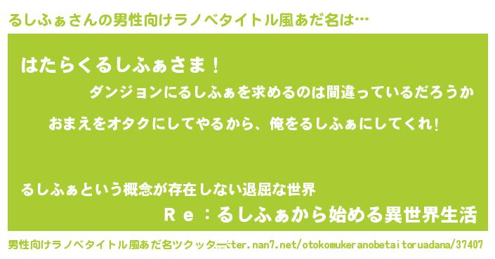 | 女子向けラノベタイトル風あだ名 | 『るしふぁ恋絵巻』『るしふぁの契約王妃』 |