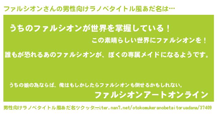 | ヘコむあだ名 | 『ファルシオン(笑)』『ファもー』 |
