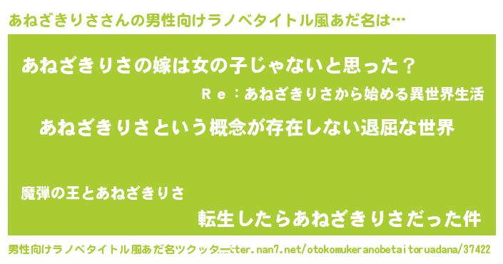 あねざきりささんの男性向けラノベタイトル風あだ名をツクッター!