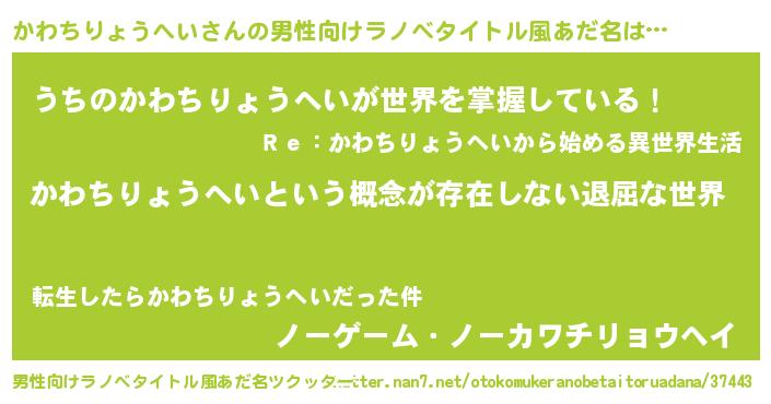 | 女子向けラノベタイトル風あだ名 | 『異世界で失敗しない100のかわちりょうへい』 |