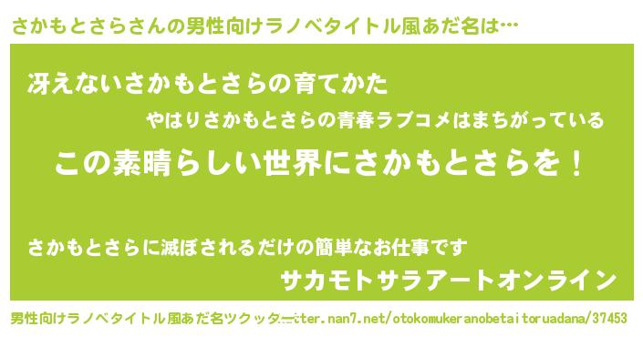| 女子向けラノベタイトル風あだ名 | 『悪役さかもとさらに転生したようですが、知った事ではありません』 |