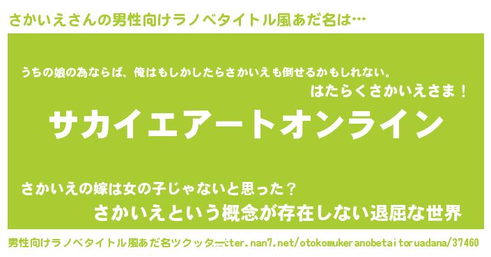 | 胡散臭い通販商品みたいなあだ名 | 『億万長者になれる霊験あらたかなお札…その名も「さかいえ」』 |