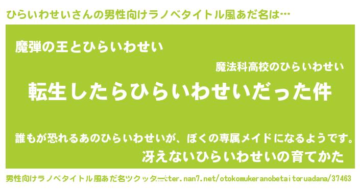 | 胡散臭い通販商品みたいなあだ名 | 『世界中を虜にした100年もののヴィンテージワイン…その名も「ひらいわせい」』 |