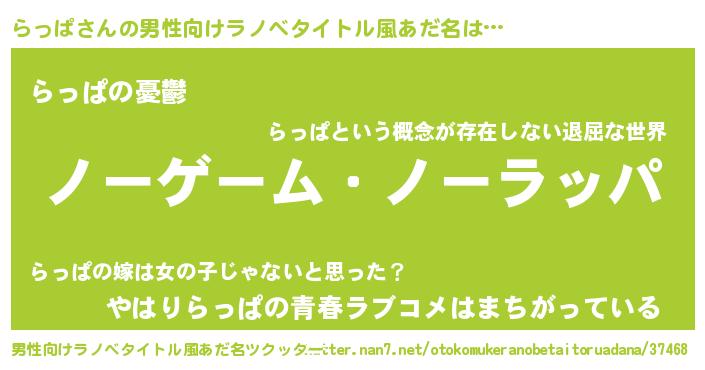 | 女子向けラノベタイトル風あだ名 | 『死神らっぱの再婚』 |