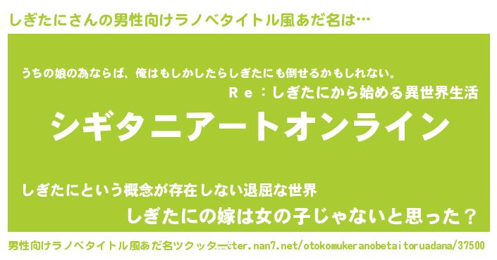 | 女子向けラノベタイトル風あだ名 | 『誰かこのしぎたにを説明してください! ~契約から始まるウェディング~』 |