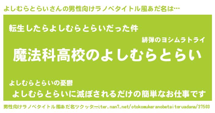| 女子向けラノベタイトル風あだ名 | 『よしむらとらいアンティーク』 |