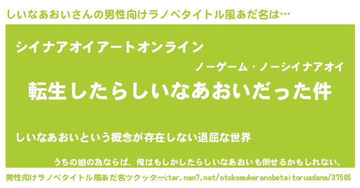 | 女子向けラノベタイトル風あだ名 | 『しいなあおいの玉の輿計画!』 |