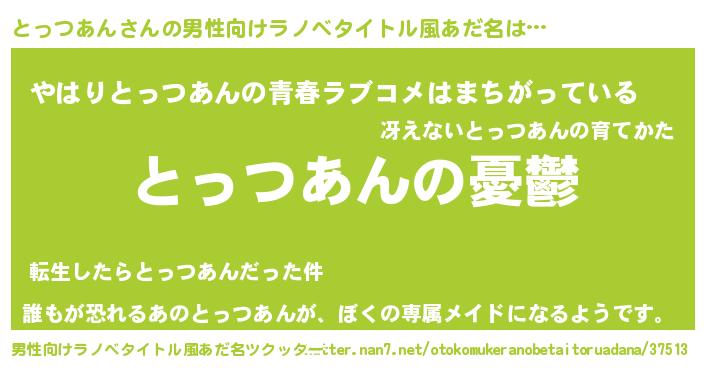 | 胡散臭い通販商品みたいなあだ名 | 『モテモテ間違いなしブレスレット…その名も「とっつあん」』 |