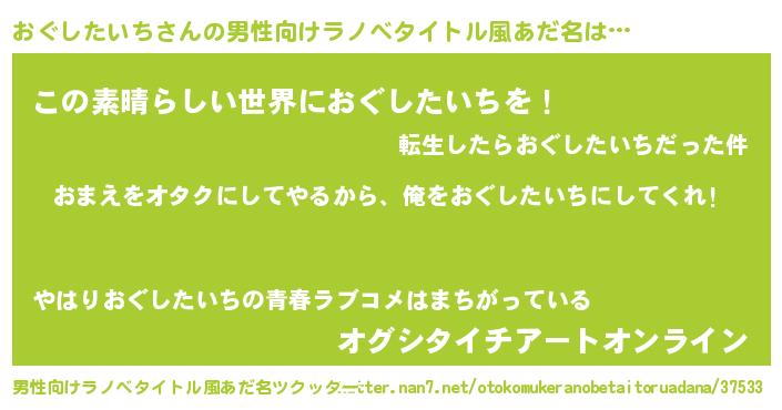 | 女子向けラノベタイトル風あだ名 | 『おぐしたいち夫妻のなれそめ』 |