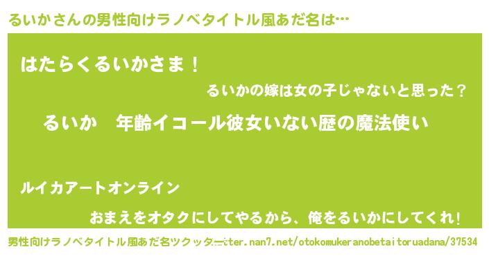 | 女子向けラノベタイトル風あだ名 | 『るいかの玉の輿計画!』『るいか恋絵巻』 |