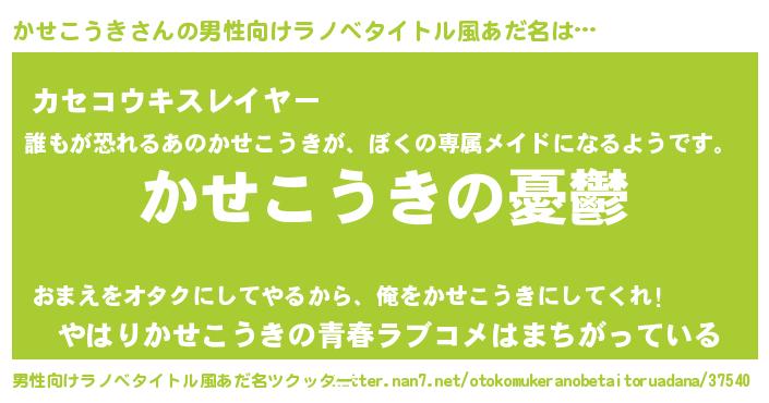 | 女子向けラノベタイトル風あだ名 | 『(仮)かせこうきのやんごとなき事情』 |