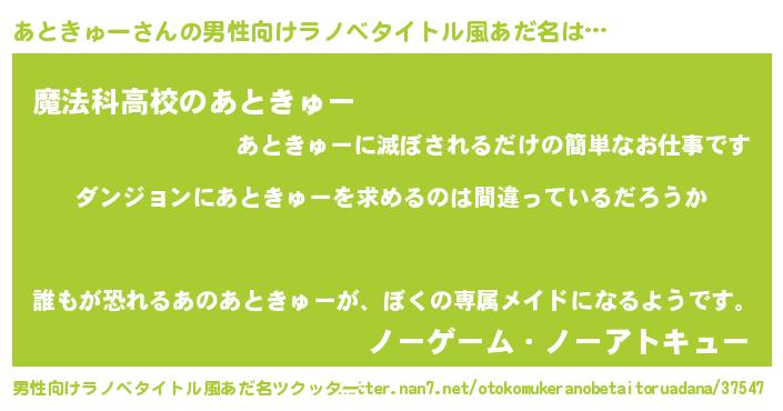 | 女子向けラノベタイトル風あだ名 | 『あときゅーは平凡を望む』 |