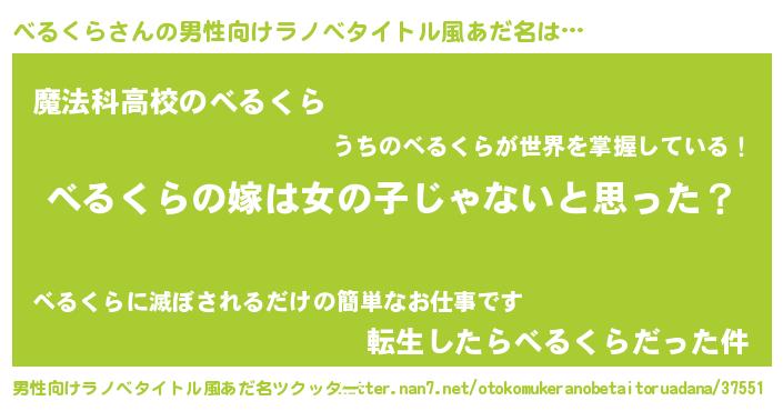 | 女子向けラノベタイトル風あだ名 | 『べるくら様がみてる』 |