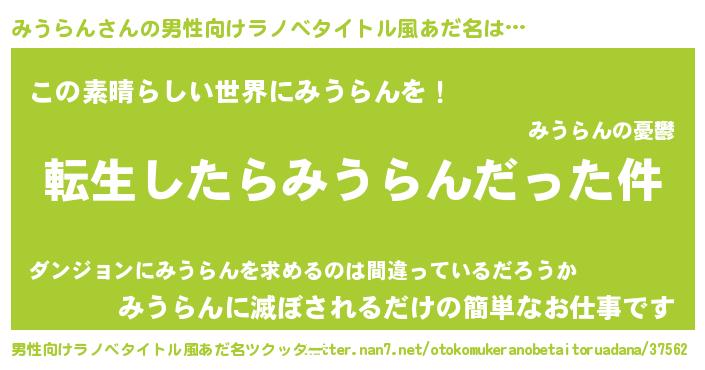 みうらんさんの男性向けラノベタイトル風あだ名をツクッター!