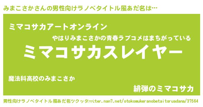 | 胡散臭い通販商品みたいなあだ名 | 『必ず成功する霊験あらたかなお札…その名も「みまこさか」』 |