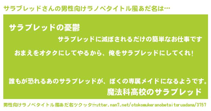 | ヘコむあだ名 | 『サラにゅー』『サラブレッド(小並感)』 |