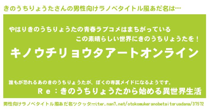 | 女子向けラノベタイトル風あだ名 | 『きのうちりょうた姫と円卓の騎士』 |