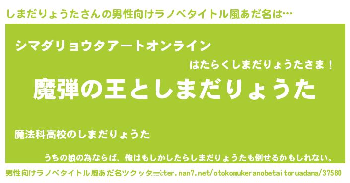 | 女子向けラノベタイトル風あだ名 | 『乙女ゲームの破滅フラグしかない悪役しまだりょうたに転生してしまった…』 |