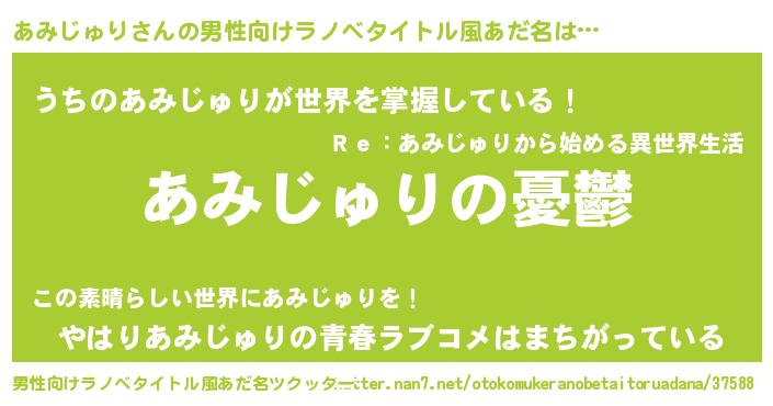 | 胡散臭い通販商品みたいなあだ名 | 『必ず成功するブレスレット…その名も「あみじゅり」』 |