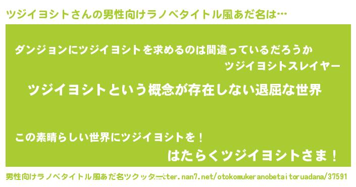 | 女子向けラノベタイトル風あだ名 | 『異世界で失敗しない100のツジイヨシト』 |