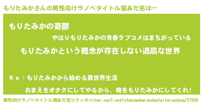 | 意味不明あだ名 | 『永久保存もりたみか』『自称もりたみか』 |