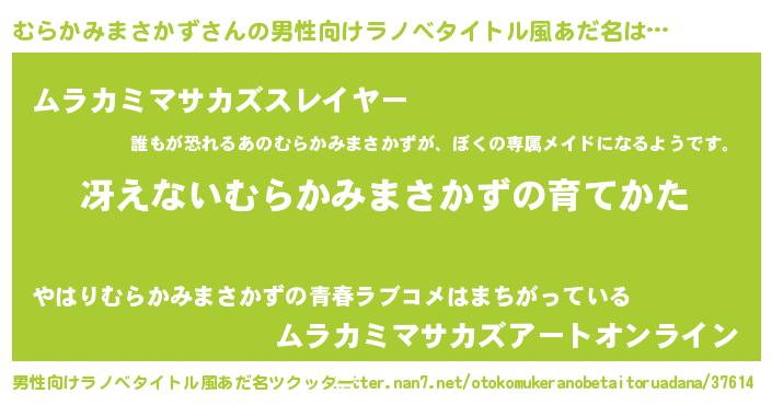| ヘコむあだ名 | 『むらにゅー』『むらかみまさかず(小並感)』 |