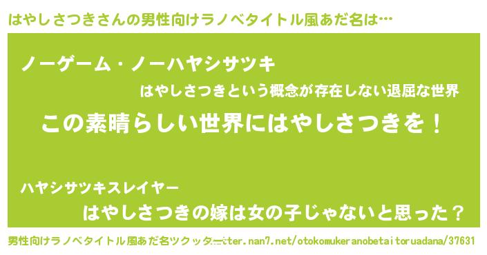 | 意味不明あだ名 | 『住所不定無職はやしさつき(93歳)』 |