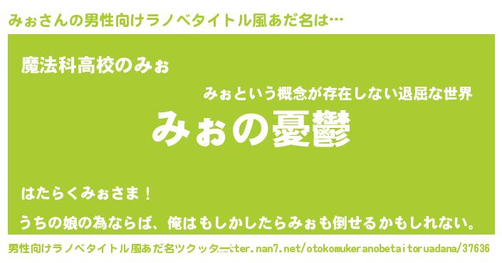 | 女子向けラノベタイトル風あだ名 | 『みぉ姫と円卓の騎士』『みぉの婚約者』 |