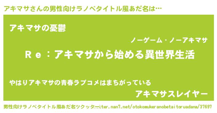 アキマサさんの男性向けラノベタイトル風あだ名をツクッター!