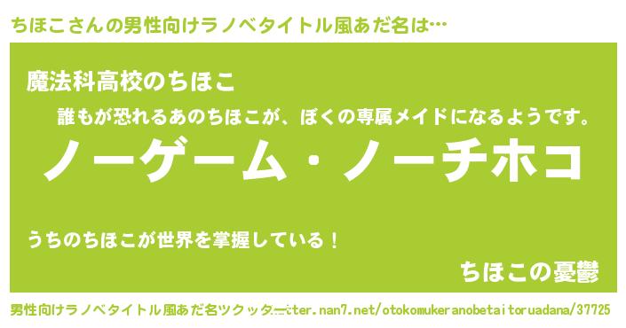 | 伝説のあだ名 | 『救世主となる錬金術士ちほこ』 |