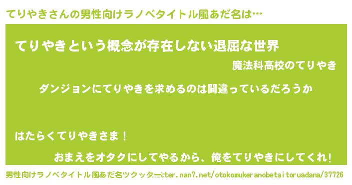 | ヒーロー風カッコイイあだ名 | 『暗黒騎士テリ』『ネオテリヤキ』 |