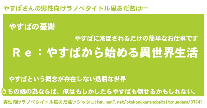 | 女子向けラノベタイトル風あだ名 | 『闇のやすば』『やすばの婚約者』 |