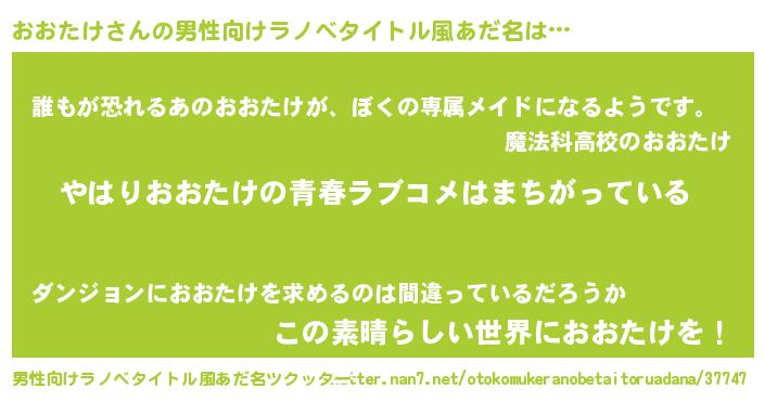 | 女子向けラノベタイトル風あだ名 | 『おおたけの雑貨屋さん』 |
