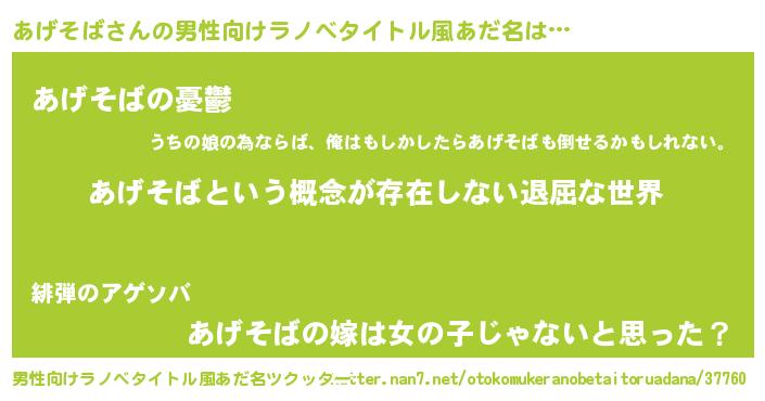| ヘコむあだ名 | 『あげそば(苦笑)』『あげにー』 |