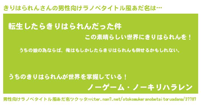 | 女子向けラノベタイトル風あだ名 | 『きりはられん伯爵の花嫁』 |