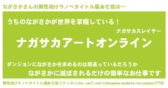 | 女子向けラノベタイトル風あだ名 | 『誰かこのながさかを説明してください! ~契約から始まるウェディング~』 |