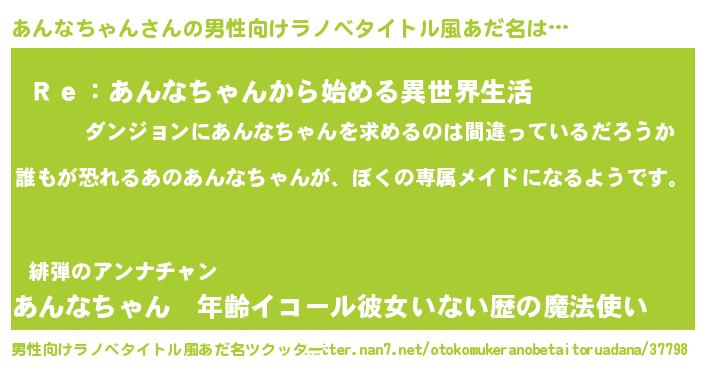 | 胡散臭い通販商品みたいなあだ名 | 『来世でも幸せになれる健康食品…その名も「あんなちゃん」』 |