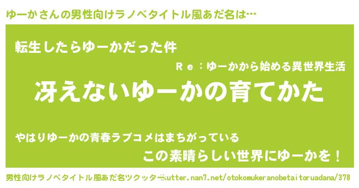 | 胡散臭い通販商品みたいなあだ名 | 『世界中を虜にした100年もののヴィンテージワイン…その名も「ゆーか」』 |