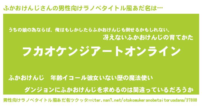 | 女子向けラノベタイトル風あだ名 | 『ふかおけんじ姫と円卓の騎士』 |