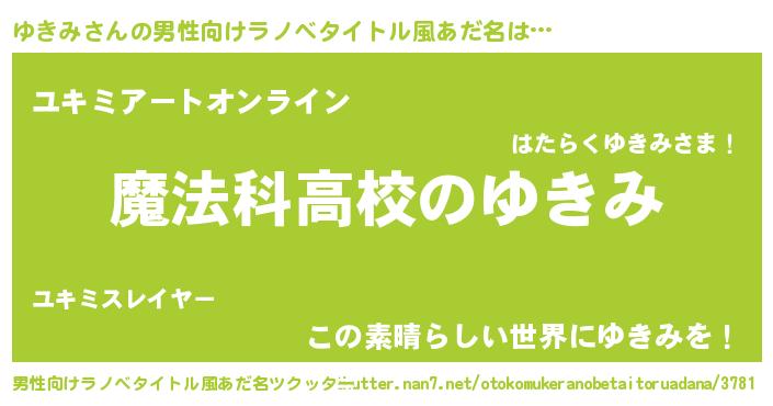 ゆきみさんの男性向けラノベタイトル風あだ名をツクッター!