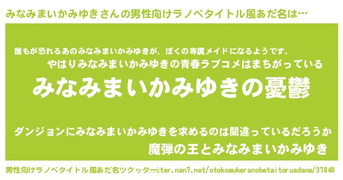 | 胡散臭い通販商品みたいなあだ名 | 『モテモテ間違いなし水晶球…その名も「みなみまいかみゆき」』 |
