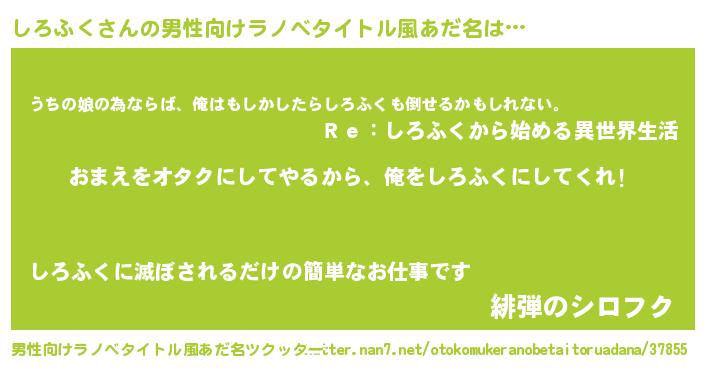 | 女子向けラノベタイトル風あだ名 | 『しろふく恋絵巻』『しろふく伯爵の花嫁』 |